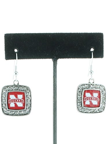 Officially Licensed University of Nebraska Cornhuskers Silvertone Square Crystal Studded Dangle Earrings