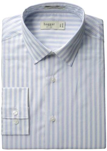 Haggar Men's Fitted Mechanical Stretch Long Sleeve Pattern Dress Shirt, Sky, 18.5(36/37)