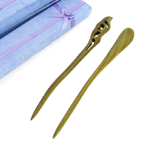 kilofly Oriental Handcraft Carved Wooden Hair Sticks Set of 2, Auspicious Clouds & Pin Fork, with Gift Box