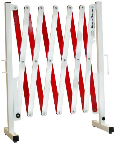 Versa-Guard VG-4000 Aluminum/Steel Expandable Portable Safety Barricade with Stationary Feet, 37" Height, 17" to 136" Expanded Height, White/Red