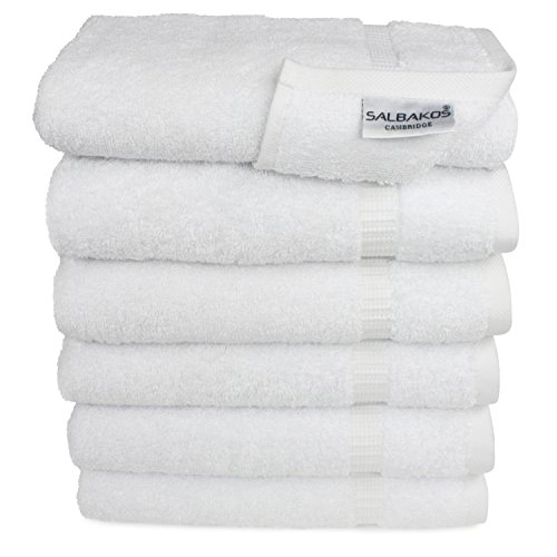 SALBAKOS Premium Organic Turkish Cotton Hand Towels 6-Pack, 700 GSM, 16”x30”, White, Luxury Hotel & Spa