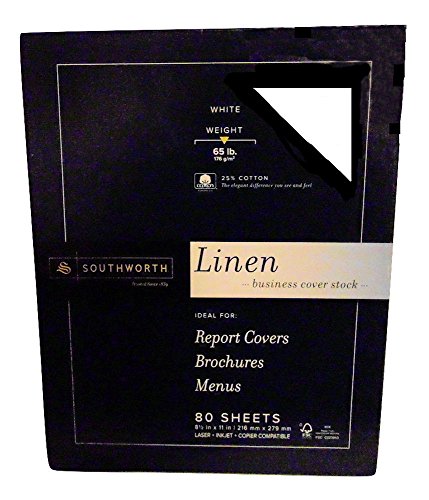 Southworth 25% Cotton Linen Coverstock, 8.5 x 11 inches, White, 65 lb, 80 Sheets