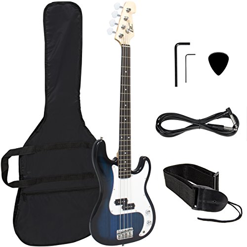 Blue Electric Bass Guitar Includes Strap, Guitar Case, Amp Cord and More
