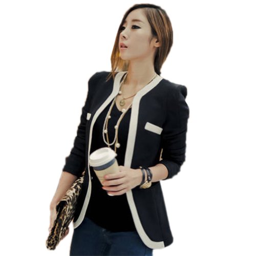Ninimour-women's Slim Ol Blazer Jacket Suit Coat (M, Black)