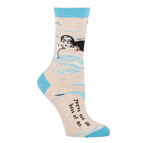 Blue Q "You're Not the Boss of Me" Socks (One size, beige/blue/black)