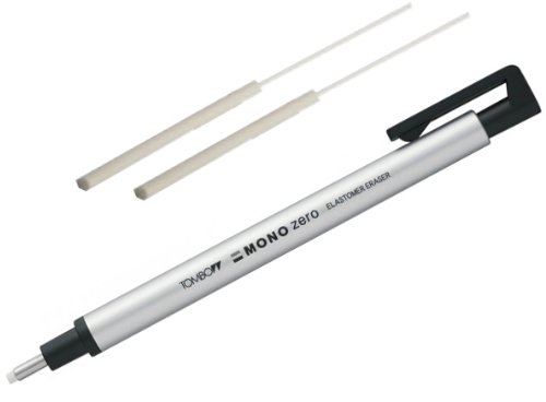 Tombow MONO Zero Eraser, Round Tip, Retractable, Silver Barrel (Eraser with an extra refill (57305 and 57307))