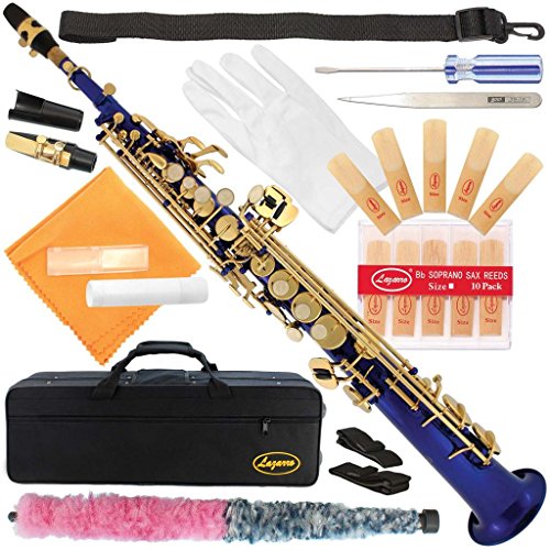 300-BU-BLUE/GOLD Keys Bb STRAIGHT SOPRANO Saxophone Sax Lazarro+11 Reeds,Care Kit~22 COLORS~SILVER or GOLD KEYS~CHOOSE YOURS !