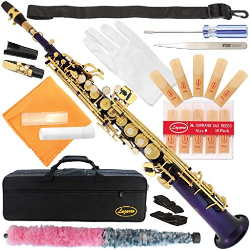 300-PR-PURPLE/GOLD Keys Bb STRAIGHT SOPRANO Saxophone Sax Lazarro+11 Reeds,Care Kit~22 COLORS~SILVER or GOLD KEYS~CHOOSE YOURS !