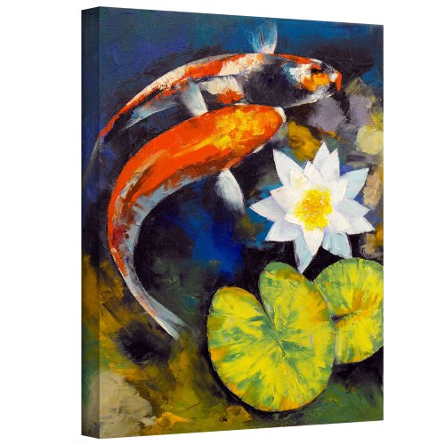 ArtWall Michael Creese 'Koi Fish And Water Lily' Gallery-Wrapped Canvas, 36 by 48-Inch