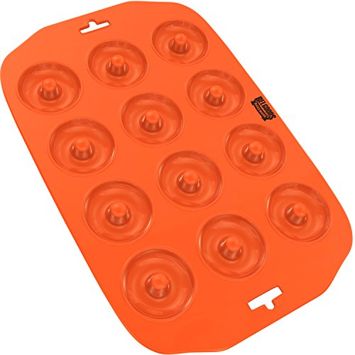 Silicone Mini Donut Maker Baking Pan Tray - 12 Holes - Pure Food Grade Premium Non-Stick Silicon - Orange - Bake Like a Professional