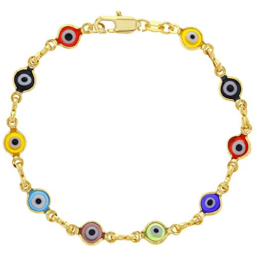 In Season Jewelry 14k Gold Plated Multicolor Evil Eye Greek Turkish Nazar Hamsa Kabbalah Bracelet