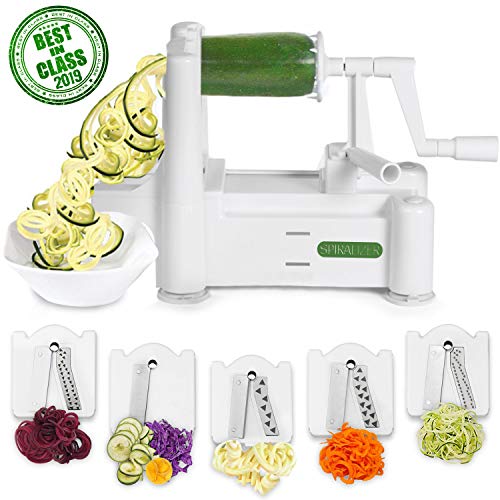 Spiralizer 5-Blade Vegetable Slicer, Strongest-and-Heaviest Spiral Slicer, Best Veggie Pasta Spaghetti Maker for Keto/Paleo/Gluten-Free, Comes with 4 Recipe Ebooks