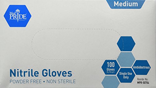 MedPride General Purpose Powder-Free Nitrile Gloves, Medium, Box/100
