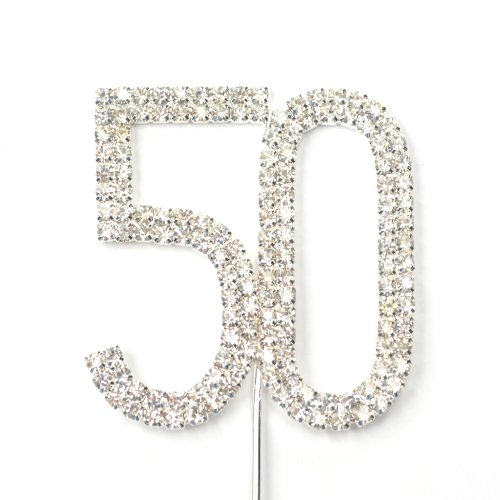 Cosmos Rhinestone Crystal Silver Number 50 Birthday 50th Anniversary Cake Topper