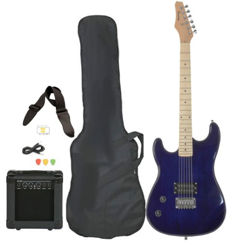 Davison Guitars Full Size Black Electric Guitar with Amp, Case and Accessories Pack Beginner Starter Package Blue Left Handed