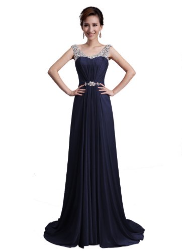 DLFASHION Scoop Neck Sweep Train Beaded Chiffon Prom Dress