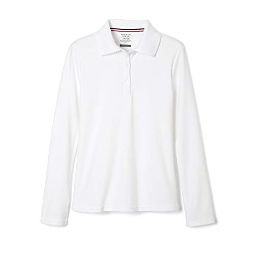 French Toast School Uniform Girls Long Sleeve Polo with Picot Collar, White, 5