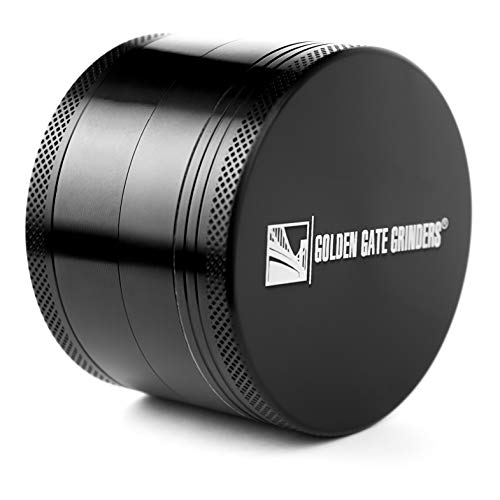 Golden Gate Grinders #1 Best Herb Grinder 2.5 Inch 4-piece Anodized Aluminum with Pollen Catcher – Large Black