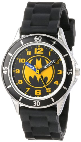 Batman Kids' Analog Watch with Silver-Tone Casing, Black Bezel, Black Strap - Official Yellow/Black Batman Logo on The Dial, Time-Teacher Watch, Safe for Children - Model: BAT9152