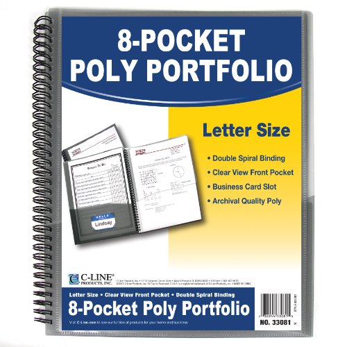 C-Line 8-Pocket Spiral-Bound Poly Portfolio, Letter Size, 1 Portfolio, Smoke Gray (33081)