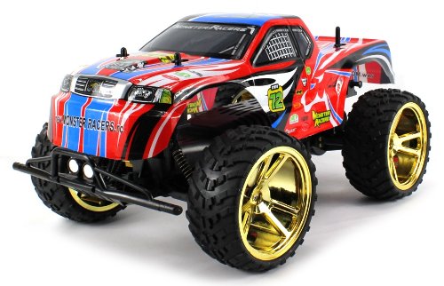 Big Wheel King Electric RC Truck BIG 1:10 Scale Monster RFS Off Road Ready To Run RTR w/ Working Suspension and Spring Shock Absorbers (Colors May Vary)