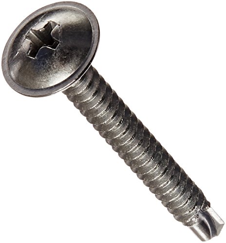 410 Stainless Steel Self-Drilling Screw, Plain Finish, Modified Truss Head, Phillips Drive, #2 Drill Point, #8-18 Thread Size, 1-1/2" Length (Pack of 25)