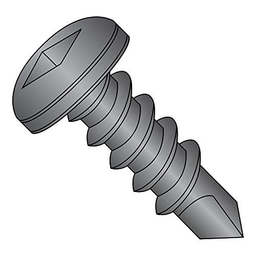 Steel Self-Drilling Screw, Black Oxide Finish, Pan Head, Square Drive, #3 Drill Point, #10-16 Thread Size, 1-1/2" Length (Pack of 50)