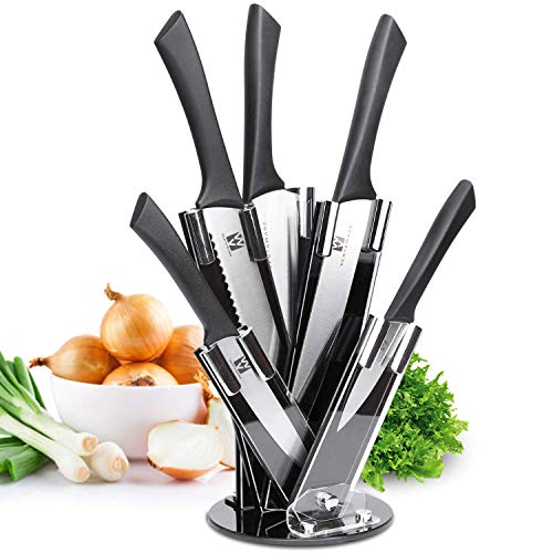 Vestaware Knife Set/Kitchen Knvies,Kitchen Knife Set with Carving Utility Chef Bread and Paring Knives - 6 Piece High Carbon Stainless Steel Cutlery Knife Set with Block