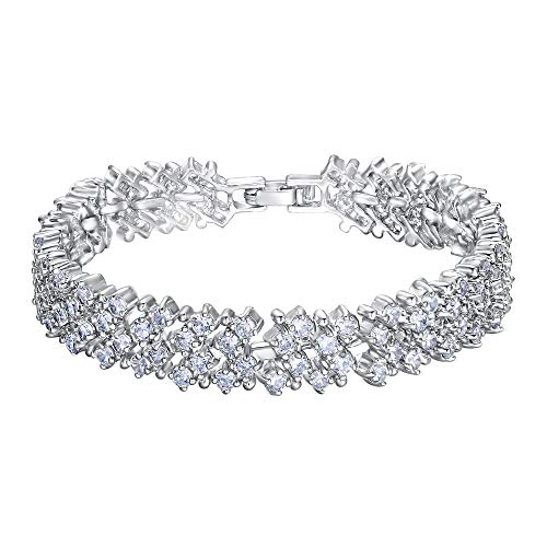 EVER FAITH Women's Round Full Cubic Zirconia Bridal Tennis Bracelet Clear Silver-Tone