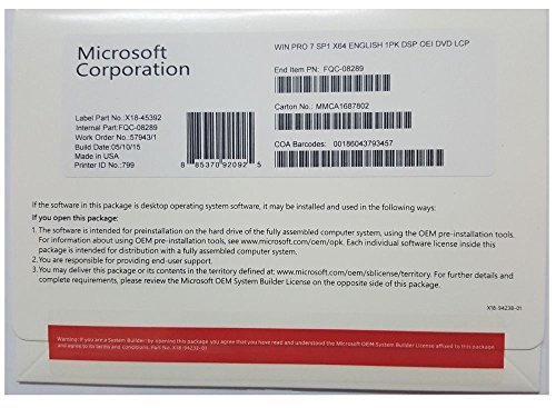 Windows 7 Professional SP1 64bit (OEM) System Builder DVD 1 Pack (New Packaging)