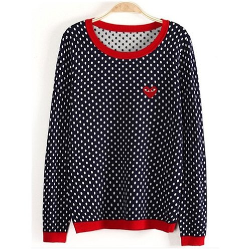 Followme2shop Clothing Heart Shape Embroidery Dot Pullover Sweater for Women (Navy Blue)