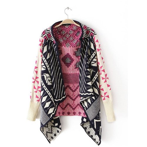 Bohemian Casual Tribal Oversized Knit Long Sleeve Sweater Coat (Pink)