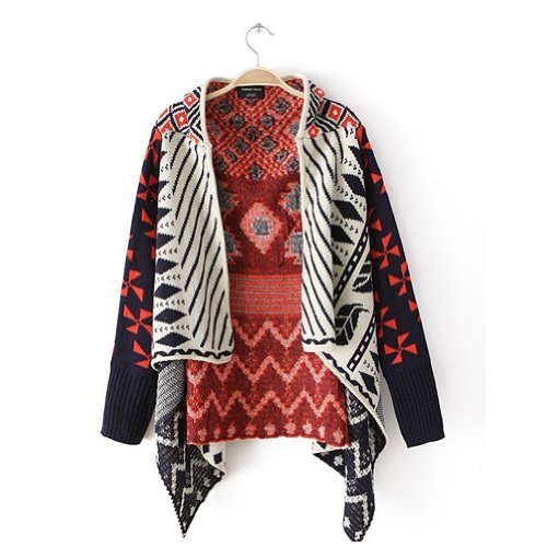 Followme2shop Clothing Bohemian Casual Tribal Oversized Knit Long Sleeve Sweater Coat (Orange)