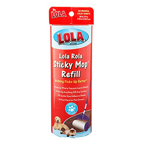 Lola Rola Sticky Mop Adhesive Head, Refill for Lola Rola Sticky Mop, Picks Up Dirt, Dust, and Hair, 30 Large Adhesive Perforated Sheets, Works on Multiple Surfaces, Perfect for Pet Owners, 6-Pack