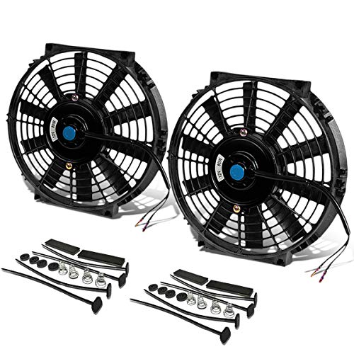 (Pack of 2) 10 Inch High Performance 12V Electric Slim Radiator Cooling Fan w/Mounting Kit - Black