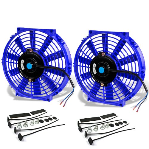 (Pack of 2) 10 Inch High Performance 12V Electric Slim Radiator Cooling Fan w/Mounting Kit - Blue