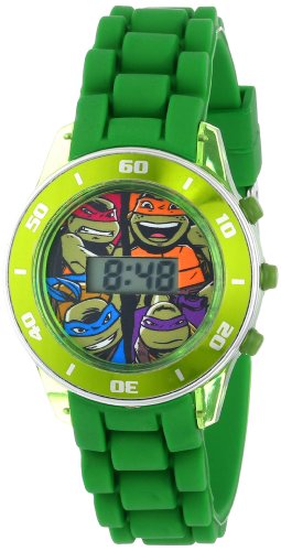 Ninja Turtles Kids' Digital Watch with Matallic Green Bezel, Flashing LED Lights, Green Strap - Kids Digital Watch with Teenage Mutant Ninja Turtles on the Dial, Safe for Children - Model: TMN4008