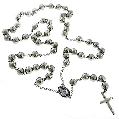 ToTeM Catholic Stainless Steel Rosary Beads 18" 24" or 28" Necklace with Crucifix and Medal