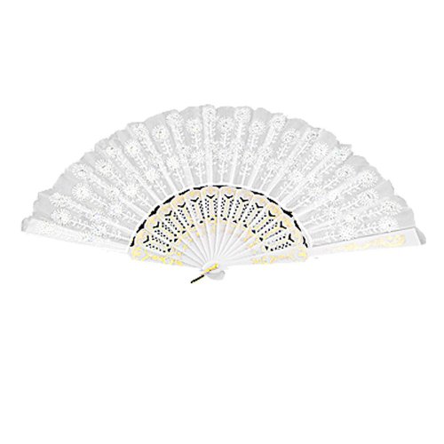 uxcell® Sequin Flower Detailings Nylon Hand Folding Fan White
