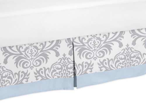 Blue, Gray and White Damask Print Avery Bed Skirt for Girl or Boy Toddler Bedding Sets