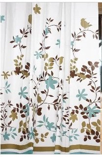 Garden Floral Shower Curtain with Hooks, 71" X 71" - Blue/Brown Flowers & Birds