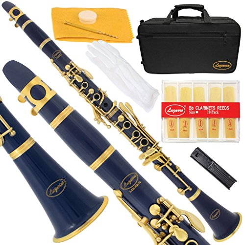 Lazarro 160-DB-L B-Flat Bb Clarinet Dark Blue-Gold Keys with Case, 11 Reeds, Care Kit and Many Extras