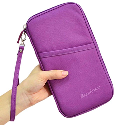 Seawhisper Durable Waterproof Nylon Travel Bag Document Wallet with Hand Strap Passport Credit ID Card Cash Travel Wallet Clutch Purse Holder Case Document Organizer Zip - purple