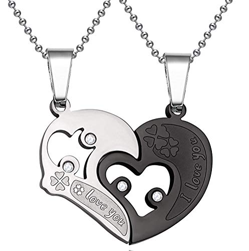 SHINYSO Stainless Steel Mens Womens Couple Pendant Necklace Love Heart CZ I Love You Puzzle Matching