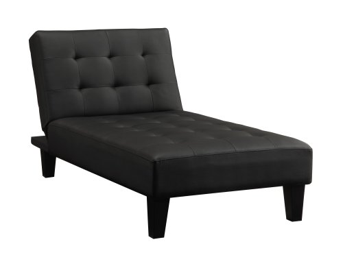 DHP Julia Chaise Chair Lounger, Converts to Sleeper, Black Faux Leather