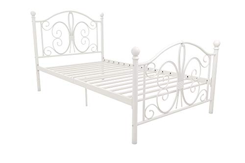 DHP 3246098 Vintage Design Bombay Bed Frame with Metal Slats, Twin, White