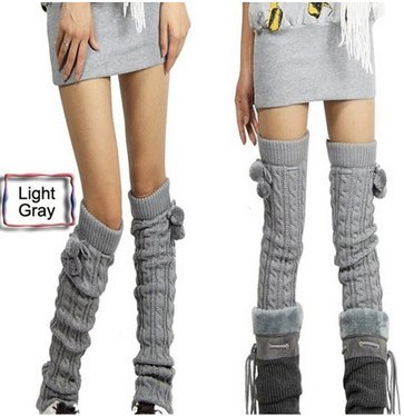 ATM FashionWorld Soft Long over Knee High Leg Thick Winter Knit Crochet Hosiery Socks(Length 26.7" with ball, Light Grey)