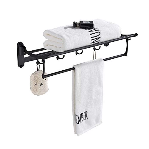 Rozin Bath Towel Holder Wall Mount Folding Towel Rack with Hooks Black Color