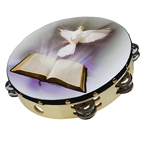 8" Dove & Bible Double Row Jingle Percussion Tambourine for Church
