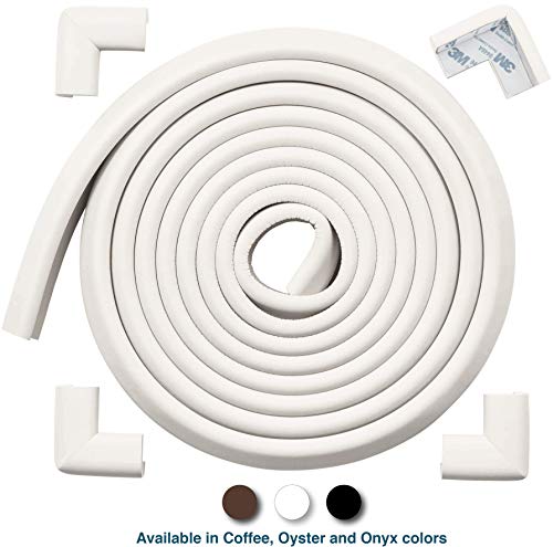 Roving Cove | Baby Proofing Edge Protectors & Corner Guards | Safety Foam Fireplace & Table Bumper | Pre-Taped Corners | Safe Edge & Corner Cushion | 16.2 ft [15 ft Edge + 4 Corners] | Oyster White